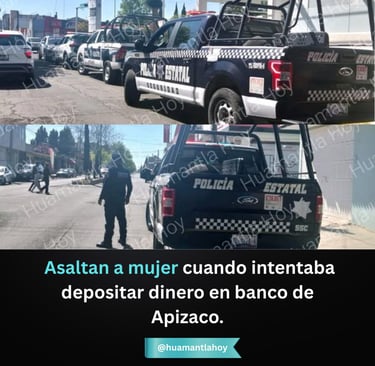 Asaltan a mujer cuando intentaba depositar dinero en banco de Apizaco