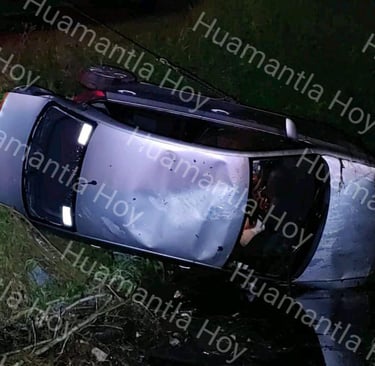 Panotla, Tlax.- Sábado 11 Octubre 2025.- Un joven conductor salvó la vida milagrosamente la noche de este sábado 11 de octubre, luego de que el vehículo en el que viajaba terminara al interior de un riachuelo de aguas negras ubicado a un costado de la autopista Tlaxcala–San Martín Texmelucan, a la altura del retorno de la Zona Militar.
