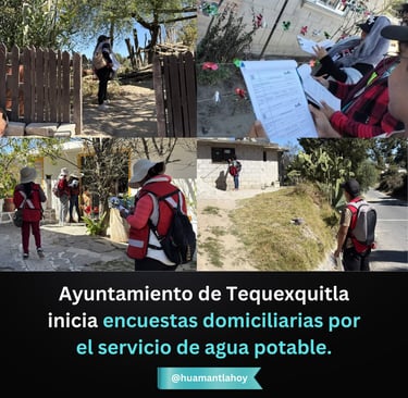 El HH. Ayuntamiento de Apizaco 2024-2027inició visitas domiciliarias para recabar información sobre el cumplimiento del pago del servicio de agua potable. Los encuestadores estarán debidamente identificados y solicitarán datos con el objetivo de mejorar la organización y los servicios municipales.