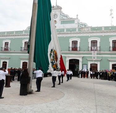 Los integrantes del Ayuntamiento de Huamantla, llevaron a cabo este lunes la Ceremonia de Lectura y Fijación del Bando Solemne de Fiestas Patrias 2025