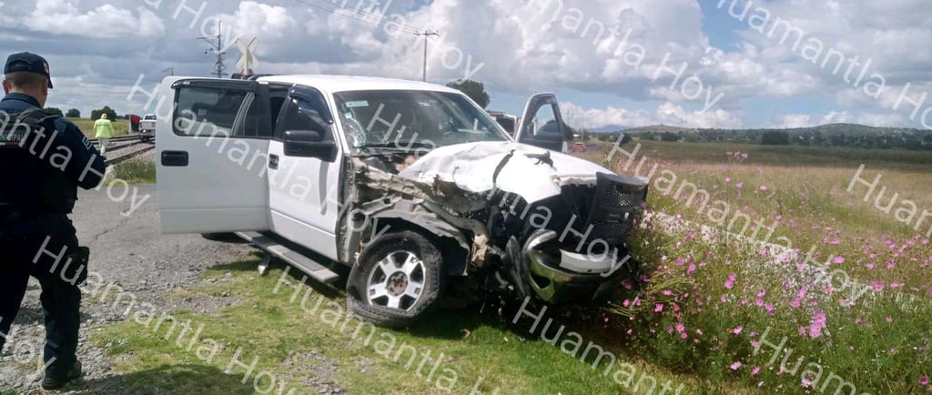 Camioneta intenta ganarle el paso al tren en Apizaco: tres heridos, entre ellos un menor de un año