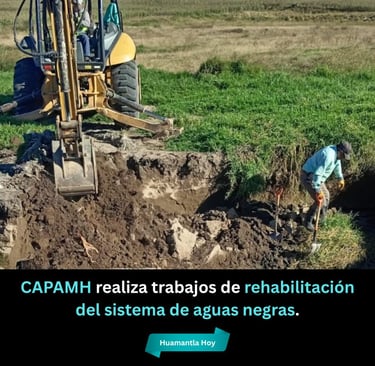 Huamantla, Tlax. Martes 14 de Octubre 2025 – Bajo la directriz de la Ing. Tania Díaz, la Comisión de Agua Potable y Alcantarillado del Municipio de Huamantla (CAPAMH) lleva a cabo trabajos de rehabilitación en el sistema de conducción de aguas residuales, debido a desperfectos detectados en la infraestructura de tuberías.