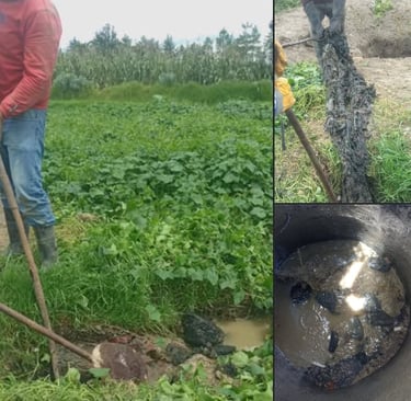 Durante estas labores también se realizó la limpieza de un pozo de visita, en el cual se encontró una gran cantidad de desperdicios, lo que representa un riesgo de taponamientos y afectaciones al flujo de las aguas residuales.