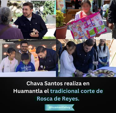 Huamantla, Tlax. Martes 6 Enero 2026. -El Presidente municipal de Huamantla, Salvador Santos Cedillo, encabezó una mañana llena de alegría, tradición y convivencia familiar durante el Corte de Rosca de Reyes, realizado en la Aldea Mágica, como parte de las celebraciones del Día de Reyes.
