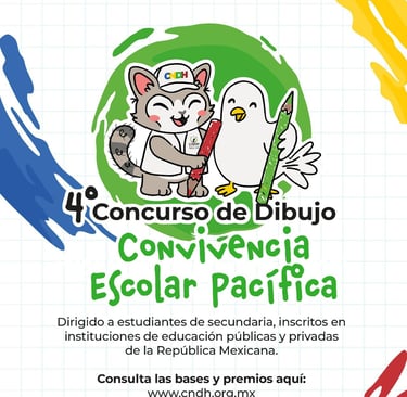 La convocatoria y las bases del 4º Concurso de Dibujo “Convivencia Escolar Pacífica” pueden consultarse en el link: www.cndh.org.mx