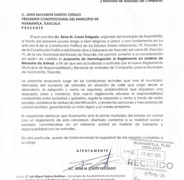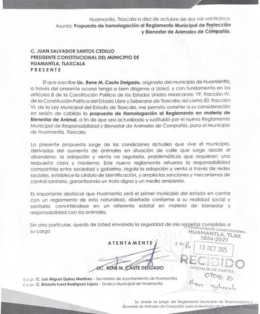 Con una propuesta innovadora en materia de bienestar animal, #ReneCaute presentó ante oficialía de partes del municipio de Huamantla