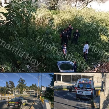 El percance ocurrió sobre los carriles con dirección a Chiautempan, a la altura del Puente Briones Derecho, donde un vehículo Chevrolet Chevy de color azul, salió de la cinta asfáltica y cayó a un canal de aguas negras, terminando completamente destrozado en la parte frontal.
