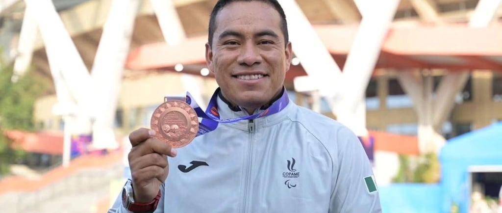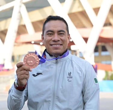 Domingo 5 de octubre 2025.- El atleta tlaxcalteca, Leonardo de Jesús Pérez Juárez, conquistó la medalla de bronce durante su participación en el Campeonato Mundial de Para Atletismo, que se desarrolló en Nueva Delhi, India.