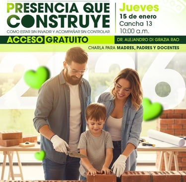 La primera conferencia lleva por título “Presencia que construye: cómo estar sin invadir y acompañar sin controlar”, y será impartida por el Dr. Alejandro Di Grazia Rao, quien abordará la relevancia de una presencia cercana, empática y respetuosa en los procesos de crecimiento emocional de las infancias y adolescencias.