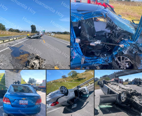 De acuerdo con los primeros reportes, un automóvil Chevrolet Aveo color azul, con placas del Estado de México, impactó de frente contra un Jetta de color gris, presuntamente luego de que uno de los conductores invadiera el carril contrario en un intento de rebase. La fuerza del golpe fue tal que el auto azul quedó completamente destrozado sobre la cinta asfáltica. El gris quedó volcado, llantas arriba.