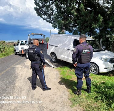 Huamantla, Tlax..- Martes 2 Septiembre 2025.- Gracias a la oportuna intervención de elementos de la Dirección de Seguridad Pública, Tránsito y Protección Civil de Huamantla, fue recuperada una unidad de reparto que momentos antes había sido reportada como robada en la carretera que conduce a la comunidad de Pilares.