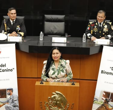 Miércoles 24 Septiembre 2025.- La Senadora Ana Lilia Rivera Rivera conmemoró, junto con las Fuerzas Armadas de México, representadas por la Secretaría de la Defensa Nacional (Sedena), la Guardia Nacional y la Secretaría de Marina, el día del binomio canino, instituido por decreto presidencial con el objetivo de reconocer y rendir homenaje a todos los manejadores y ejemplares caninos que dan lo mejor de sí en beneficio del país.