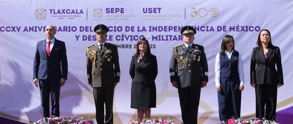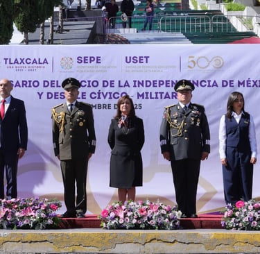 Martes 16 de septiembre 2025.- La gobernadora Lorena Cuéllar Cisneros presidió la ceremonia y el desfile cívico-militar conmemorativo al CCXV aniversario del inicio de la Independencia de México, con el propósito de rendir homenaje a las mujeres y hombres que forjaron la libertad del país y que hoy inspiran la construcción de un Tlaxcala con justicia y dignidad.