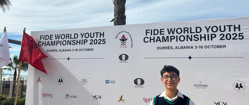 Miércoles 8 de octubre 2025.- El estudiante tlaxcalteca Ángel Palestina Díaz, del Colegio de Estudios Científicos y Tecnológicos del Estado (CECyTE) plantel 10 Yauhquemehcan, viajó a Durres, Albania, para representar a México y Tlaxcala en el Campeonato Mundial de Ajedrez FIDE de la Juventud Sub-18, que se celebra del 3 al 16 de octubre de 2025.
