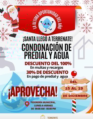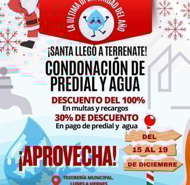 Terrenate, Tlax.- Domingo 14 Diciembre 2025. El Gobierno Municipal de Terrenate, encabezado por el presidente Filo Palafox Dorantes, lanzó una campaña de apoyo a la economía familiar como parte de las acciones de cierre de año, invitando a la ciudadanía a regularizar sus contribuciones municipales.