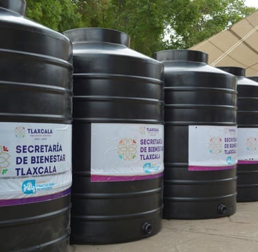 La Licenciada Fernanda Espinosa de los Monteros Cuéllar, acompañada por un equipo de colaboradores, distribuyó los tinacos a los beneficiarios.