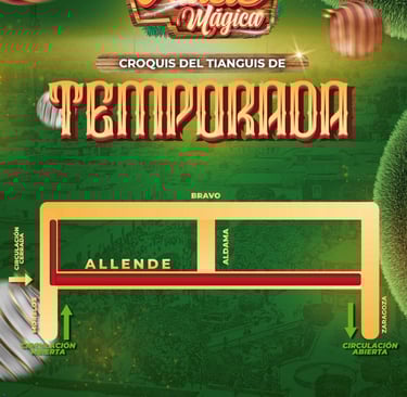 Del 20 al 31 de diciembre, la calle Allende entre Abasolo y Zaragoza será cerrada completamente al tránsito vehicular, debido a la mayor afluencia y operación total del tianguis navideño. En el caso de la calle Morelos, la circulación continuará de manera parcial con paso reducido.