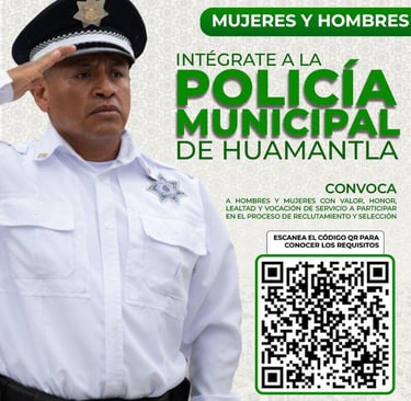 Con esta convocatoria se busca sumar a mujeres y hombres comprometidos con su comunidad, que deseen servir con responsabilidad, disciplina y vocación de proteger a las familias huamantlecas.