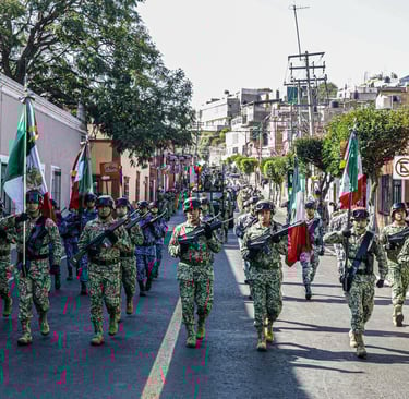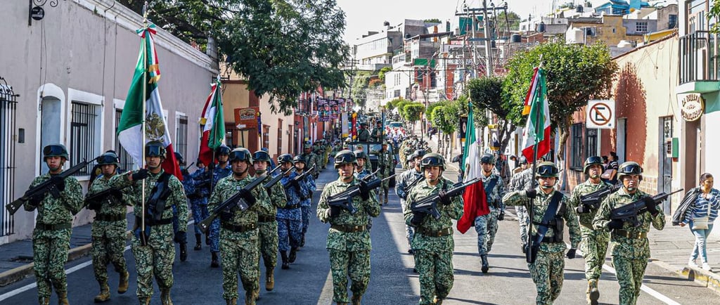 Por parte del agrupamiento del Ejército, Fuerza Aérea y Guardia Nacional, participaron cinco banderas nacionales, 364 elementos y 29 vehículos; de la Secretaría de Seguridad Ciudadana (SSC), 80 elementos, tres vehículos, dos motobombas y una ambulancia; de las distintas dependencias gubernamentales, 131 elementos, cinco vehículos y 10 entrenadores; y del sector educativo, 15 planteles, 441 docentes, dos mil 051 estudiantes y dos vehículos,