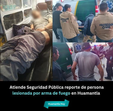 Huamantla, Tlax.- Viernes 26 Diciembre 2035.- La Dirección de Seguridad Pública, Tránsito y Protección Civil de Huamantla atendió la tarde de este 26 de diciembre de 2025 un reporte por una persona del sexo masculino lesionada por arma de fuego, registrado en la calle Abasolo Oriente, entre Bravo Norte y Narciso Norte, a un costado del Panteón Municipal de Jesús.