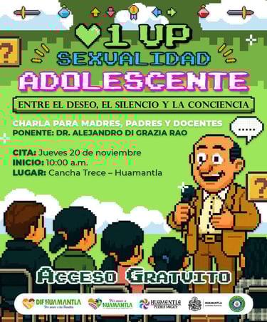 Huamantla, Tlax., Miércoles 19 de Noviembre 2025. - El Sistema Municipal DIF Huamantla invita a madres, padres de familia y personal docente a participar en la charla “Sexualidad Adolescente: entre el deseo, el silencio y la conciencia”, que será impartida por el Dr. Alejandro Di Grazia Rao, psicoterapeuta humanista reconocido por su enfoque sensible y accesible.