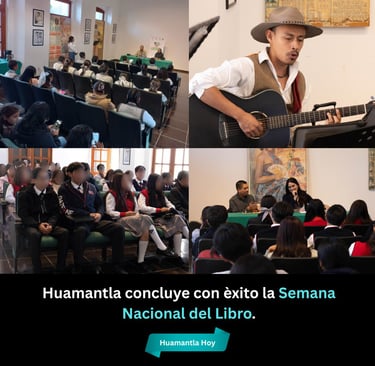 Huamantla, Tlax., Miércoles 19 Noviembre 2025. El Gobierno Municipal de Huamantla, a través de la Coordinación de Cultura, dio por concluidas las actividades realizadas del 12 al 18 de noviembre en el marco de la Semana Nacional del Libro, una jornada que reunió a lectores, escritores, estudiantes y familias en torno al poder transformador de la lectura.