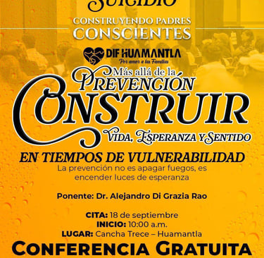 Como parte de esta iniciativa, se realizará la conferencia “Más allá de la prevención: construir vida, esperanza y sentido en tiempos de vulnerabilidad”, el próximo 18 de septiembre a las 10:00 horas, en el Auditorio Ex-Cancha 13 de Huamantla. La entrada será gratuita y abierta a todo público.