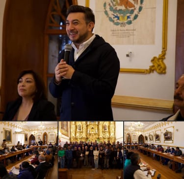 Durante la sesión, Mario Alberto Bojalil Bojalil reconoció el entusiasmo y el trabajo del Presidente Municipal de Huamantla, Salvador Santos Cedillo, destacando su impulso decidido a la preservación histórica del municipio y el valor de las acciones emprendidas para difundir su legado cultural.