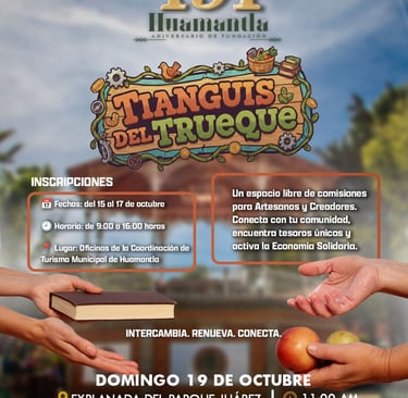 El Tianguis del Trueque es un espacio donde las familias huamantlecas podrán intercambiar productos, compartir experiencias y fortalecer la economía solidaria, promoviendo el consumo responsable y el respeto por los saberes y costumbres locales.
