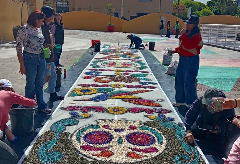 El arte efímero de Huamantla cruzó fronteras para rendir homenaje al Día de Muertos en el Centro Cultural Recoleta, en Buenos Aires, Argentina.