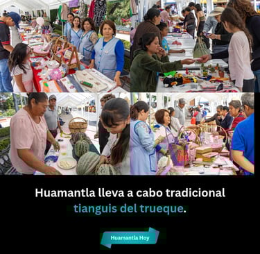 Huamantla, Tlax.Lunes 20 de Octubre 2025 - En un ambiente de convivencia y tradición, el H. Ayuntamiento de Huamantla, que encabeza el Presidente Municipal Juan Salvador Santos Cedillo, a través de la Dirección de Turismo, Cultura y Desarrollo Taurino, realizó este domingo el Tianguis del Trueque, un espacio dedicado al intercambio solidario, la cooperación comunitaria y la preservación de nuestras costumbres ancestrales.