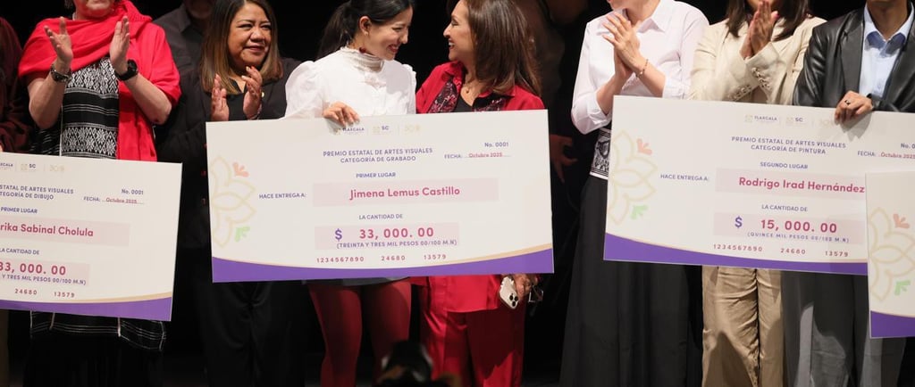 En el Teatro Xicohténcatl, los galardonados de los Premios Tlaxcala de Artes Visuales fueron ovacionados. El primer lugar en la categoría de dibujo fue Erika Sabinal Cholula, por su obra “Retrato, analogía sobre el mural de la batalla”. El segundo lugar lo obtuvo Óscar Leonardo González Flores, con “Herencia: Lozanía y declive”.