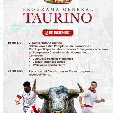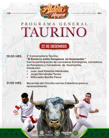 El H. Ayuntamiento de Huamantla invita a la ciudadanía, visitantes y aficionados a la tradición taurina a participar en las actividades programadas para este viernes 12 de diciembre dentro del marco de Aldea Mágica 2025.