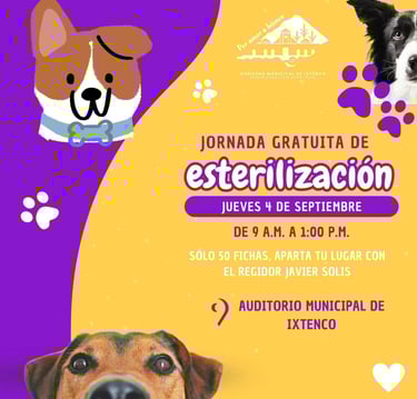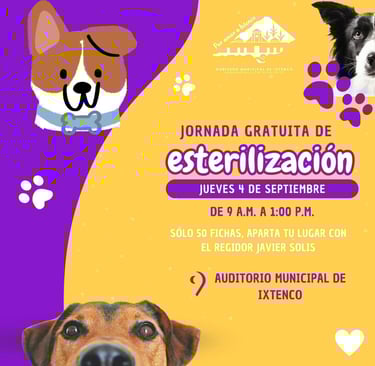 El H. Ayuntamiento de Ixtenco, en coordinación con el regidor de Salud, Javier Solís, llevará a cabo una Jornada Gratuita de Esterilización