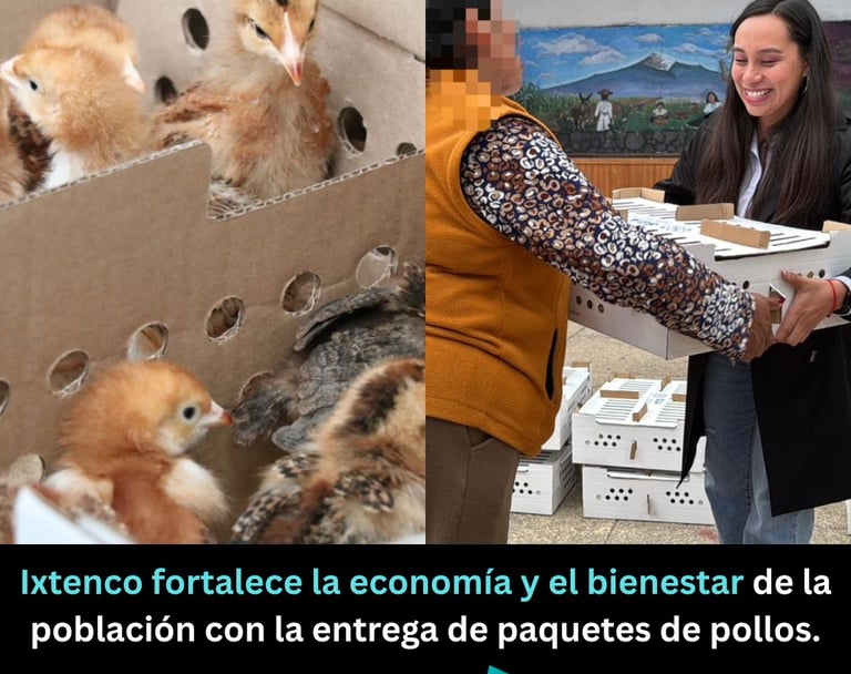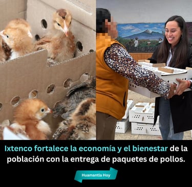 Ixtenco, Tlaxcala. Jueves 23 de Octubre 2025. -El Gobierno Municipal de Ixtenco, que encabeza Aline Lazo Caballero, en coordinación con la Secretaría de Impulso Agropecuario (SIA), llevó a cabo la entrega de 21 paquetes de pollos de postura y de engorda en beneficio del mismo número de familias del municipio, como parte de las acciones para fortalecer la economía y el bienestar de la población.