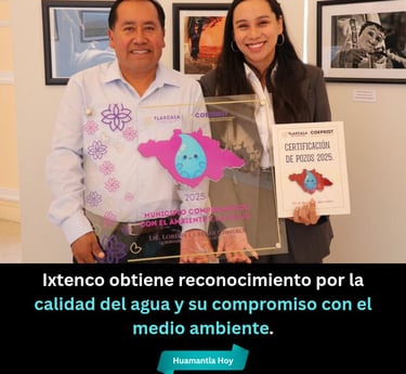 #Ixtenco recibe reconocimiento por la calidad del agua y su compromiso ambiental.