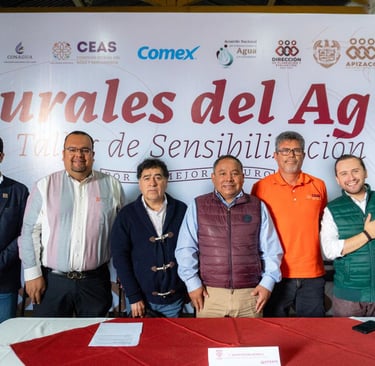 En el evento estuvieron presentes Marco Antonio Sánchez Pulido, director de Agua Potable de la Comisión Estatal de Agua y Saneamiento; José Héctor Osorio Chumacero, subdirector local de Conagua; Ignacio Muñoz Guevara, director de CAPAMA; Edgar Arturo Martínez Bermúdez, director de Planeación y Evaluación del municipio; el secretario del ayuntamiento, Juan Pablo Morales Rico; así como muralistas y miembros de la administración municipal.