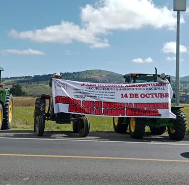 Nanacamilpa, Tlaxcala.- Martes 14 Octubre 2025.- En el marco del Paro Nacional Agropecuario, agricultores y productores del municipio de Nanacamilpa salieron a las calles este martes para exigir justicia y mejores condiciones para el campo mexicano, sumándose a la movilización pacífica que se realizó de manera simultánea en 17 estados del país.