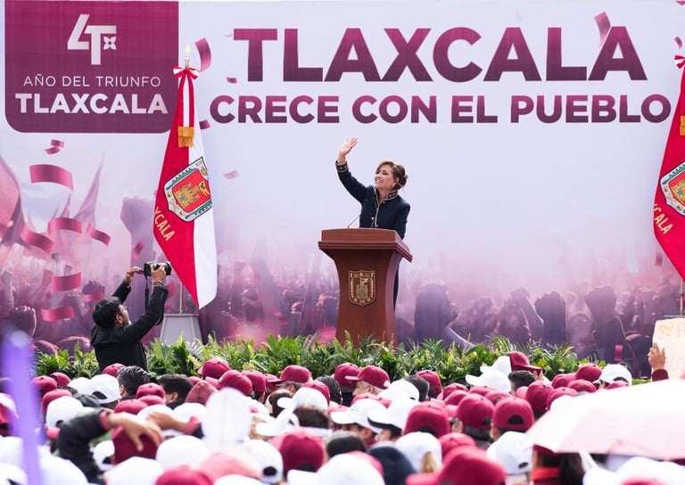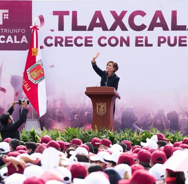 La gobernadora celebró cuatro años del triunfo de la 4T en Tlaxcala y destacó que la transformación del estado es ejemplo nacional por su modelo de gobierno honesto, con sentido humano