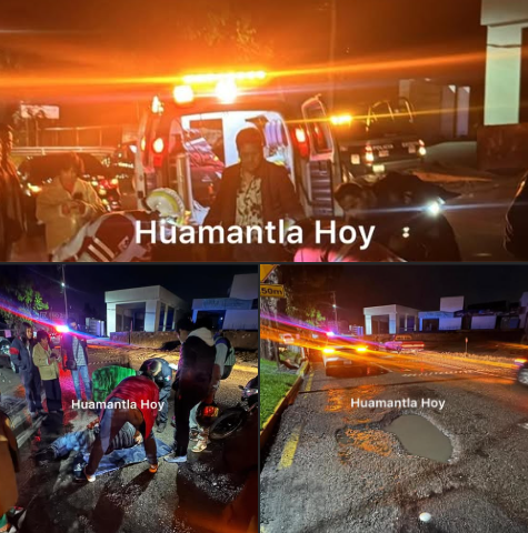 Motociclista grave tras caer en enorme bache del Bulevar Revolución, en Tlaxcala