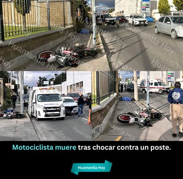Tlaxcala, Tlaxcala.- Lunes 10 Noviembre 2025.- Un motociclista perdió la vida la mañana de este lunes luego de un fuerte accidente registrado sobre la carretera Santa Ana–Ocotlán. En el percance también resultó lesionado un ciclista.