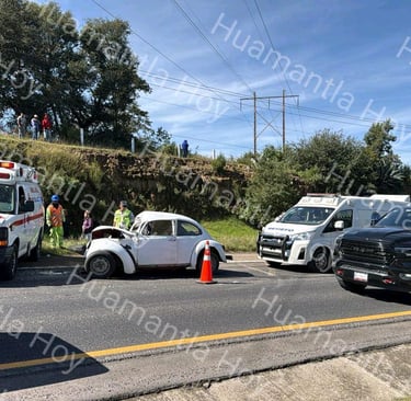 El percance se registró en los límites entre Santa Cruz Tlaxcala y Yauhquemehcan, a pocos metros del Superservicio Saeta S.A. de C.V., cuando el conductor del “vocho”, presuntamente por exceso de velocidad, no logró frenar a tiempo e impactó violentamente la parte posterior del tractocamión.