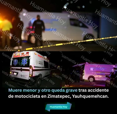 Yauhquemehcan, Tlaxcala.- Viernes 7 Noviembre 2025.- Un accidente de motocicleta cobró la vida de un menor de edad y dejó gravemente herido a otro la tarde del pasado 6 de noviembre en la comunidad de Zimatepec, muy cerca del panteón local.