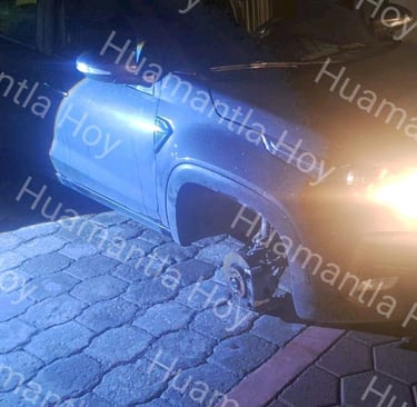 Delincuentes despojaron de neumáticos a vehículos en Acuitlapilco, Casas GEO y San Gabriel, incluso una unidad oficial de la Fiscalía fue afectada.