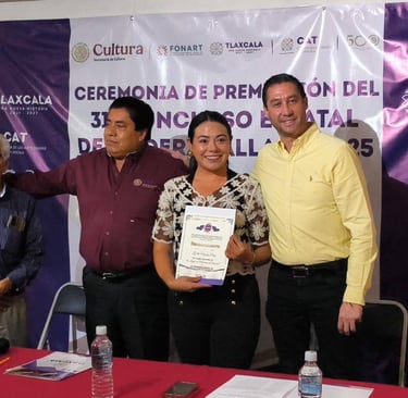 Martes 26 de agosto 2025.- La Casa de las Artesanías de Tlaxcala (CAT) premió a los ganadores del XXXI Concurso Estatal de Madera Tallada 2025, en el que participaron 21 creadores, ocho mujeres y trece hombres, quienes recibieron una bolsa total de 126 mil pesos en estímulos económicos, producto de la aportación conjunta de los gobiernos estatal y federal.