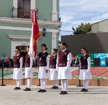 Durante el acto se realizaron los protocolos de arribo e izamiento de la Bandera Nacional, la entonación del Himno Nacional Mexicano, y el recorrido de la bandera de Tlaxcala a cargo de la escolta de la secundaria. Estos símbolos patrios evocaron la grandeza histórica de México y recordaron la importancia de mantener vivo el legado de los héroes que nos dieron patria y libertad.
