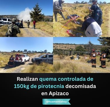 Realizan quema controlada de 150 kg de pirotecnia decomisada en #Apizaco