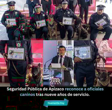 La Dirección de Seguridad Pública de Apizaco expresa su más sincero reconocimiento a estos tres héroes de cuatro patas. Su legado quedará para siempre en la historia de nuestra corporación y en la memoria de la ciudadanía.