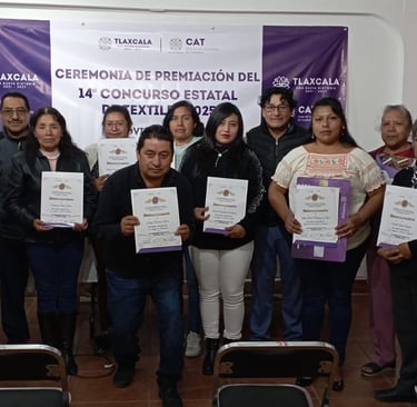 Martes 25 de noviembre 2025.- La Casa de las Artesanías de Tlaxcala (CAT) realizó la ceremonia de premiación del 14º Concurso Estatal de Textiles 2025, en la que se reconoció a las y los ganadores de las cuatro categorías del certamen y del máximo galardón.