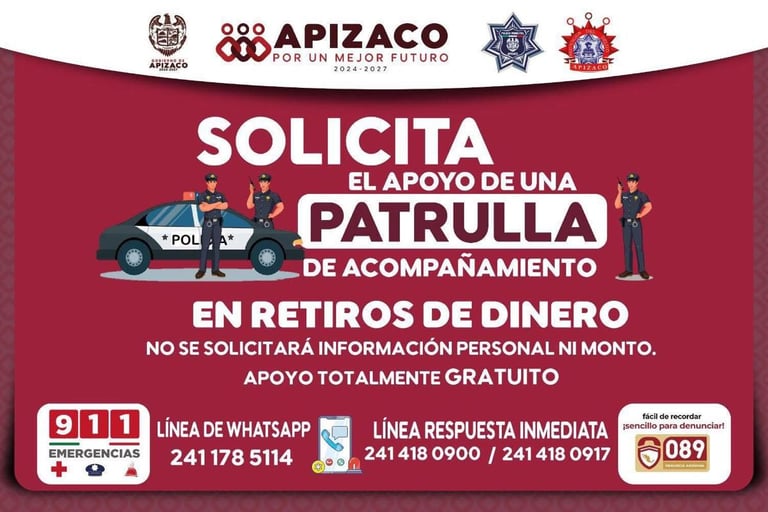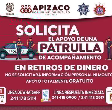 El apoyo es totalmente gratuito, no solicitamos información personal ni montos. Solo tienes que comunicarte a los números de la Dirección de Seguridad Pública de Apizaco.